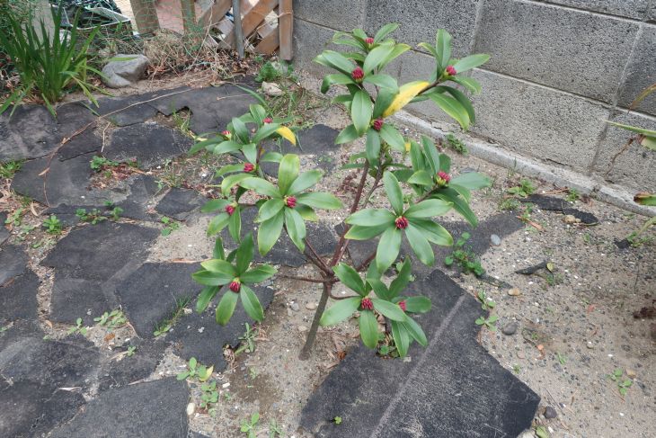 地植えの沈丁花(ジンチョウゲ)は根付いてからは、特に水を与えなくても育ちます。